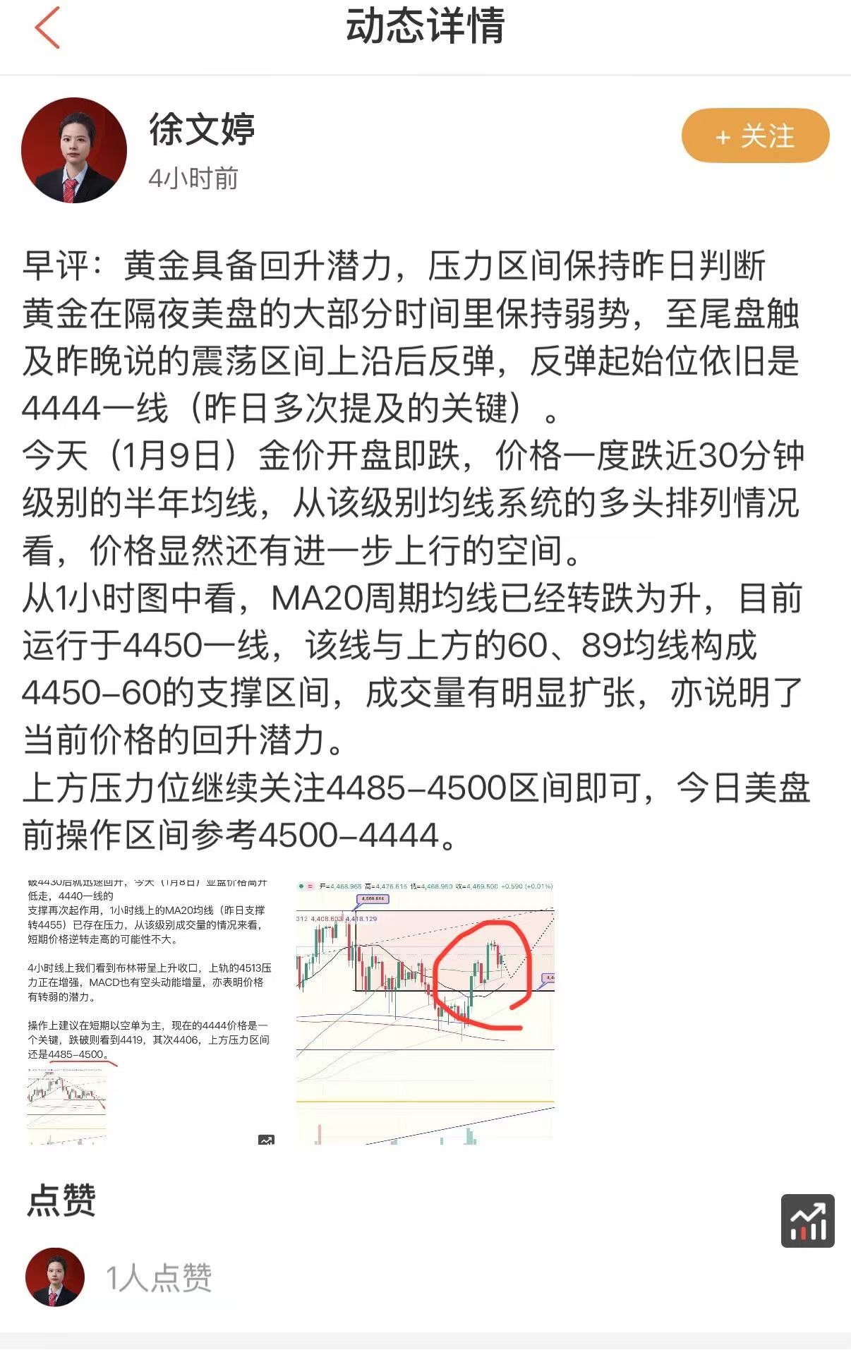 张春芳:在非农公布前,黄金4450-4480区间内交易