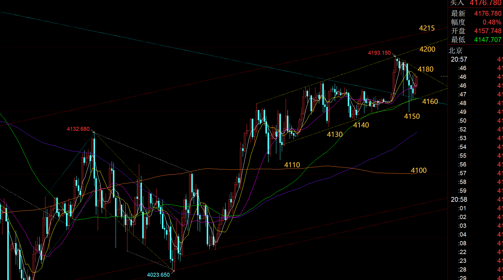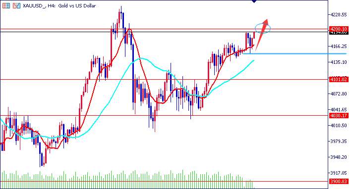 金语梁言:黄金晚间继续上看目标4200,今天周五空单慎行;