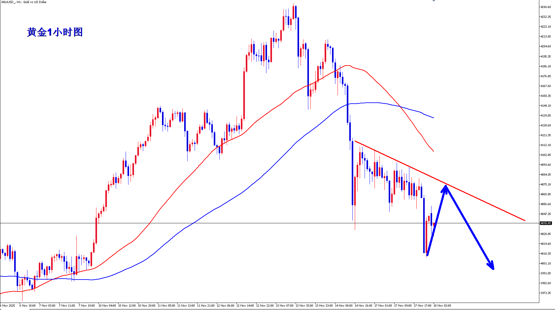 抢钱俱乐部;黄金震荡下跌,4055上反复空博弈破位4000