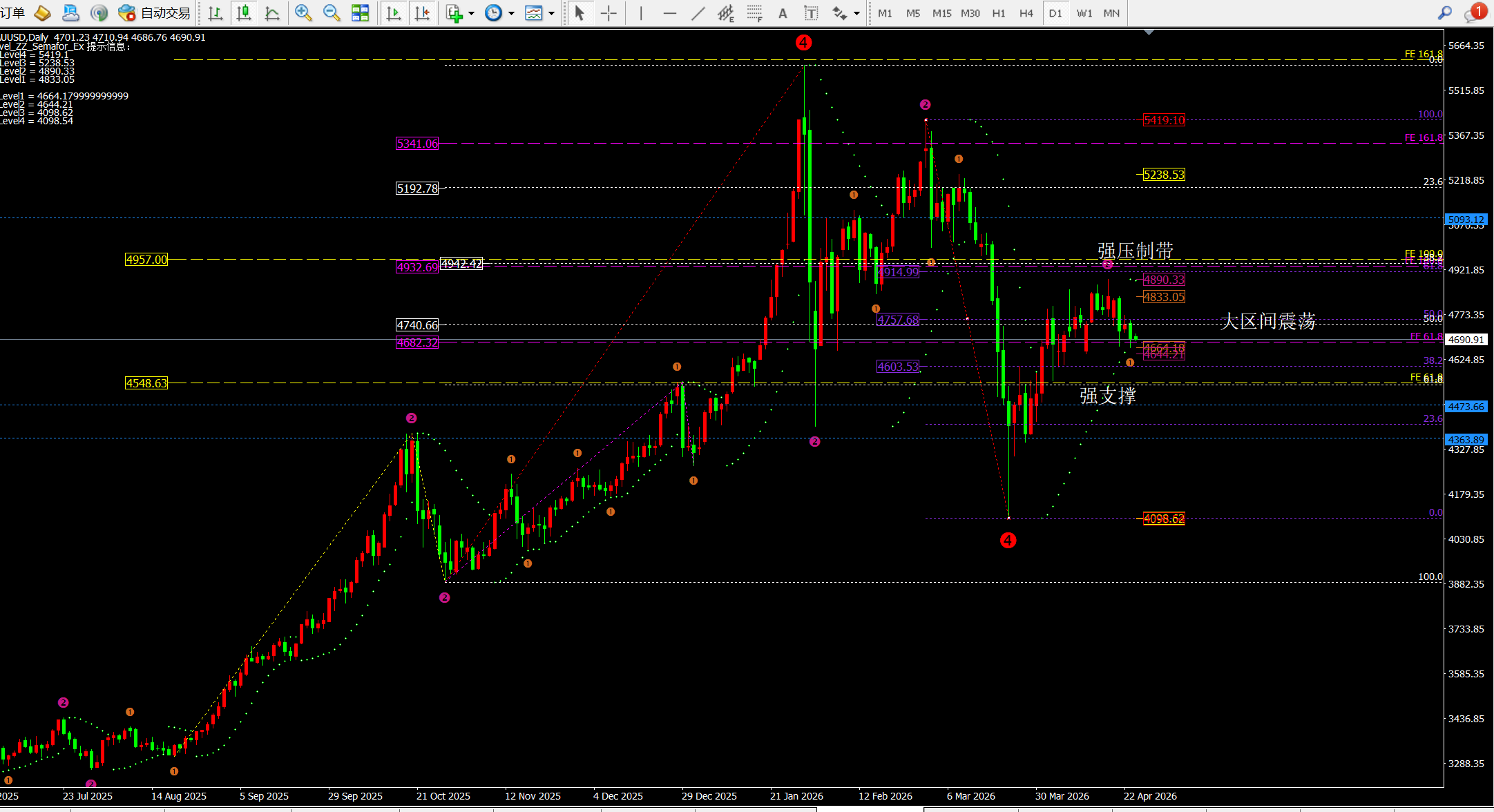 任天成:4.24黄金震荡偏弱试探前期低点4644-4550