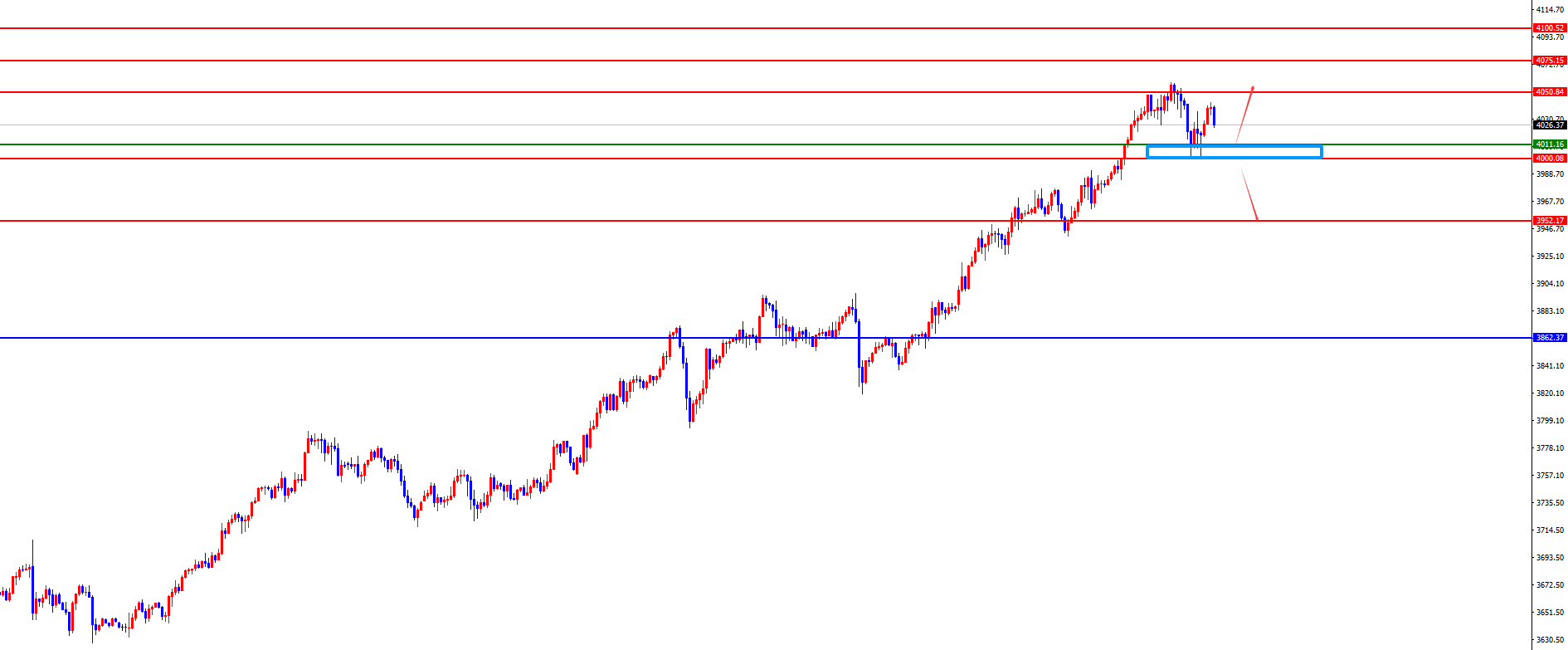 黄金维持在4040美元附近高位徘徊,多头情绪过剩,谨防回调