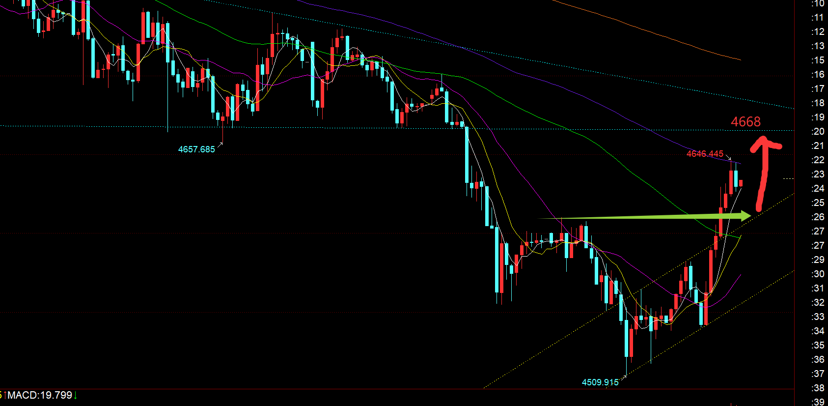 金荣中国:黄金日内低位大涨反弹,关注黄线阻力做空观点。