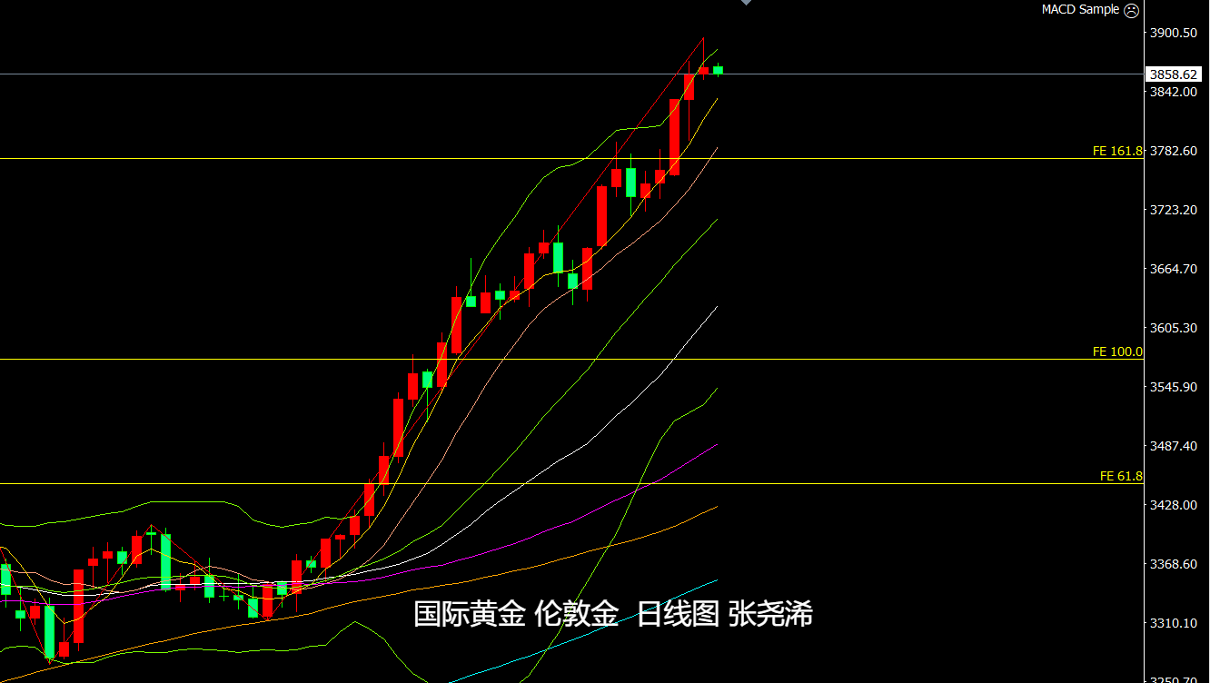 |上交易日周三(10月1日):国际黄金冲高回落收取倒垂见顶形态,暗示周尾存在一定的回落需求和风险,但鉴于目前基本面仍利好,技术走势仍维持上行趋势,故此,如有回撤,下方关注5/10日均线支撑,也是可再度入场看涨。