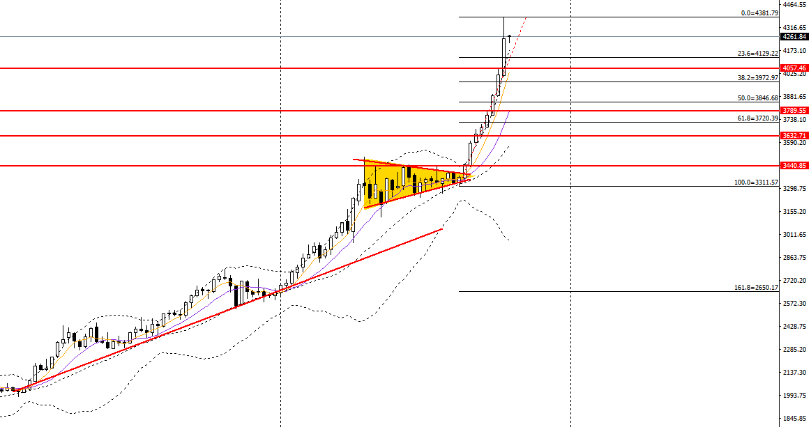 黄金上周收流星阳线,仍立于周线布林上轨之上,RSI位于超买区,波段预计将延续上行。周五破高反跌,回踩5日均线,日线RSI小幅回落,4小时一度失守4200关口,多头形态遭到破坏,4280-4300一带承压可进空,后市有望再度回踩4180-4200。黄金/人民币如于978-980一带承压可进空。
