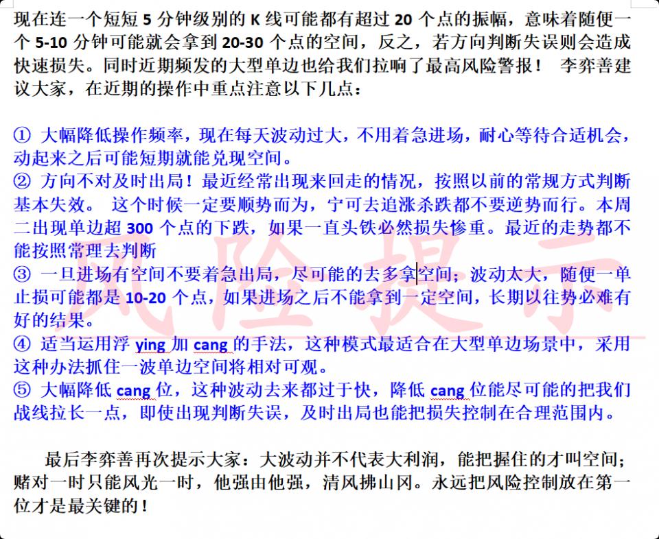 昨日的走势是非常容易造成损失的行情! 白盘在3982下方多次做空没有问题,破位3986后跟进多单也没有问题,但是因为第一波最高只到4013-14附近,若跟进多头没有及时出局,二次下来就很容易受伤。 另外破位86后我们及时转变方向,后续肯定是以继续买涨为主,给到85-95的机会肯定是要去二次进多,但是行情非要从高点大幅回撤50个点,这种大区间来回扫就非常容易造成连续跟多止损出局! 但是你要说我们判断出现问题,或者操作变形我是不认可的,3982-86这一带是非常明显的多空强弱分水岭,在86下方就尽可能做空。 破位了必须要选择跟进多或者回落多,大起大落的走势中有些亏损是无法避免的,必须要正视!