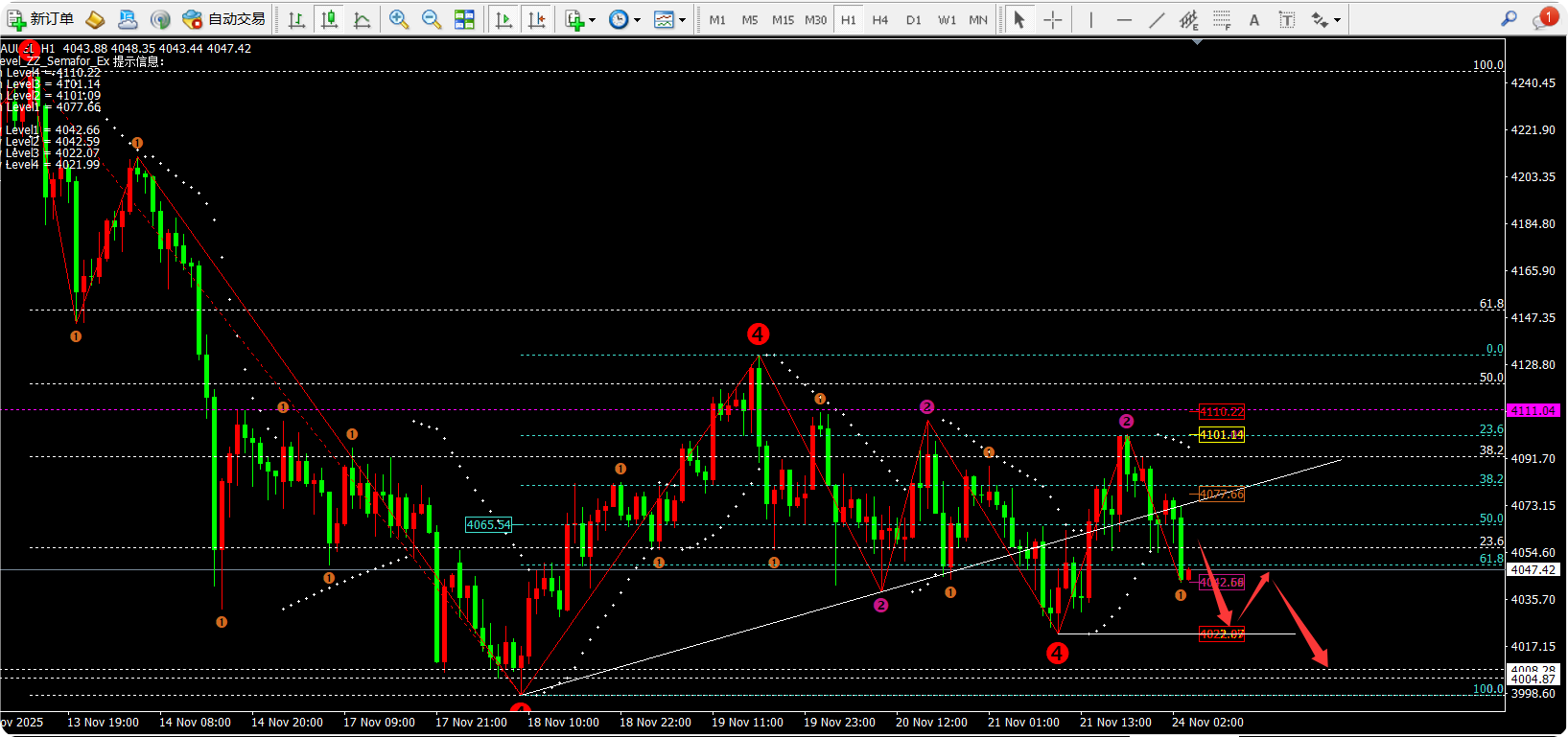 任天成:11.24黄金持续震荡走弱3997是本周最后一道支撑
