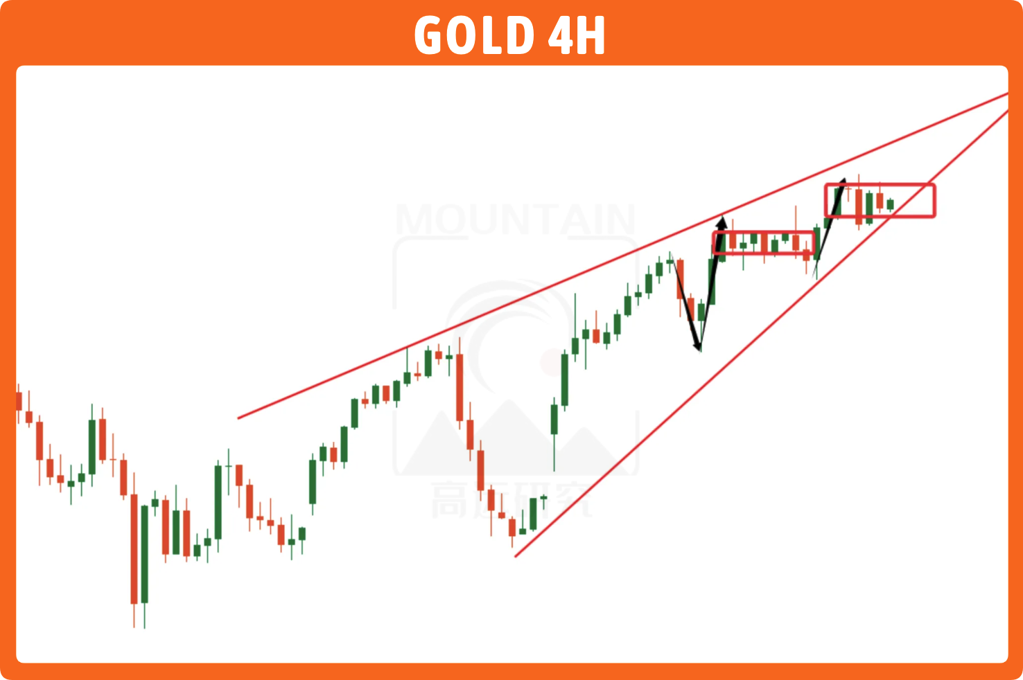只是很多人看到昨天没回补,才开始加大信心看涨,这算是一个对多头来说有利的条件,可是我不会把它当作对等看涨条件,相反,你没发现黄金一直都是在震荡上涨吗?包括今天,我本以为在昨天大阳收尾的情况下,再怎样也得来个爆发延续吧?结果只是慢慢吞吞的平盘震荡再加速,且加速K线长度很弱,一点都不像是连环爆发的那种上涨。