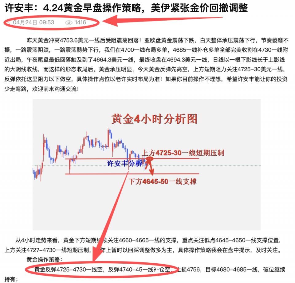 许安丰:4.26黄金下周操作策略及行情趋势在线解析