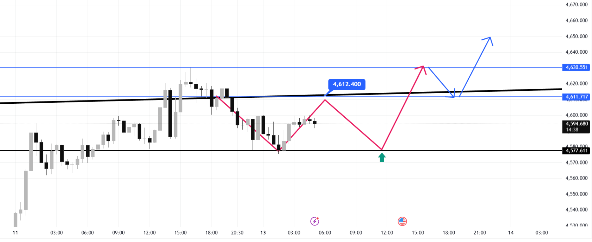 黄金高位震荡,今夜CPI数据来袭,多头决战4650美元关口