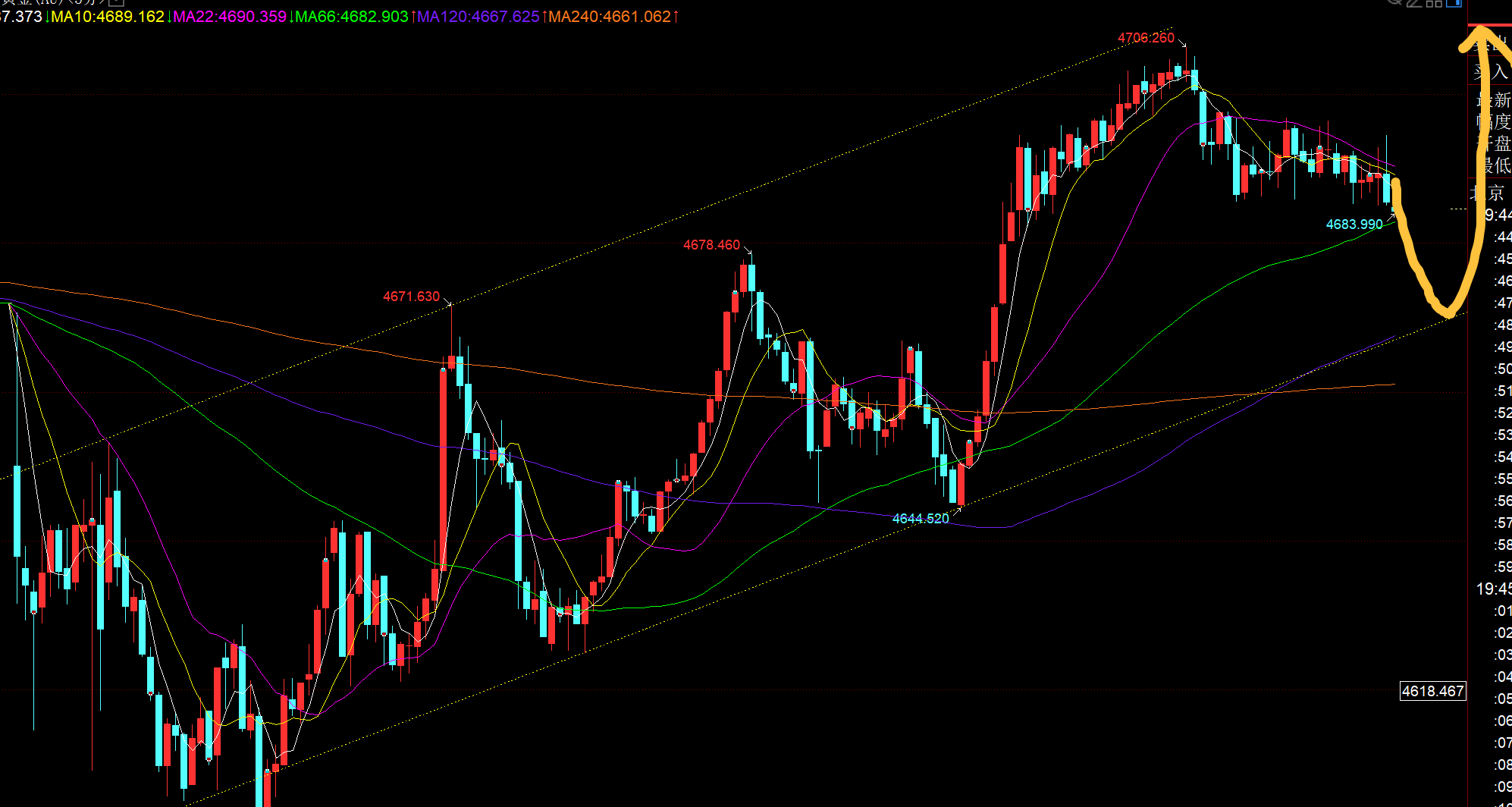 郑氏点银:黄金日内探底V走高,今晚4670成顶底