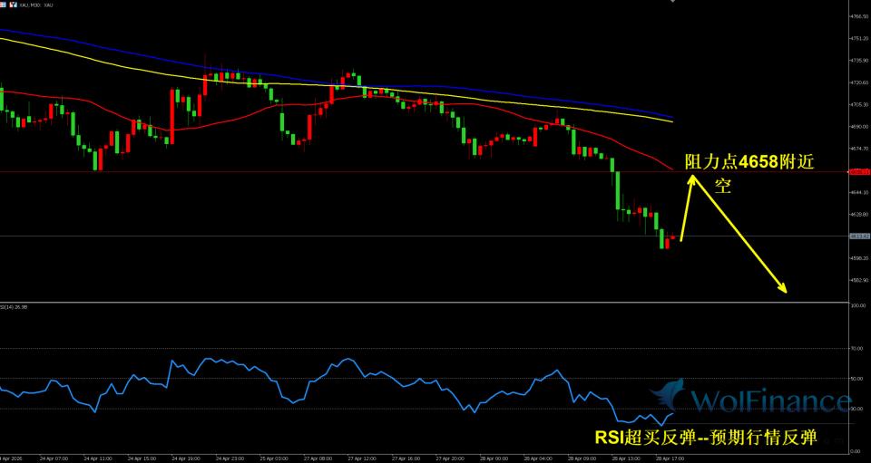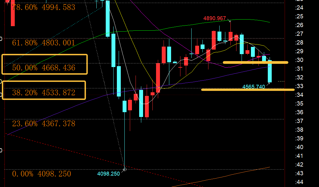 郑氏点银:黄金失守4668分割,逐步往下一个分割4533