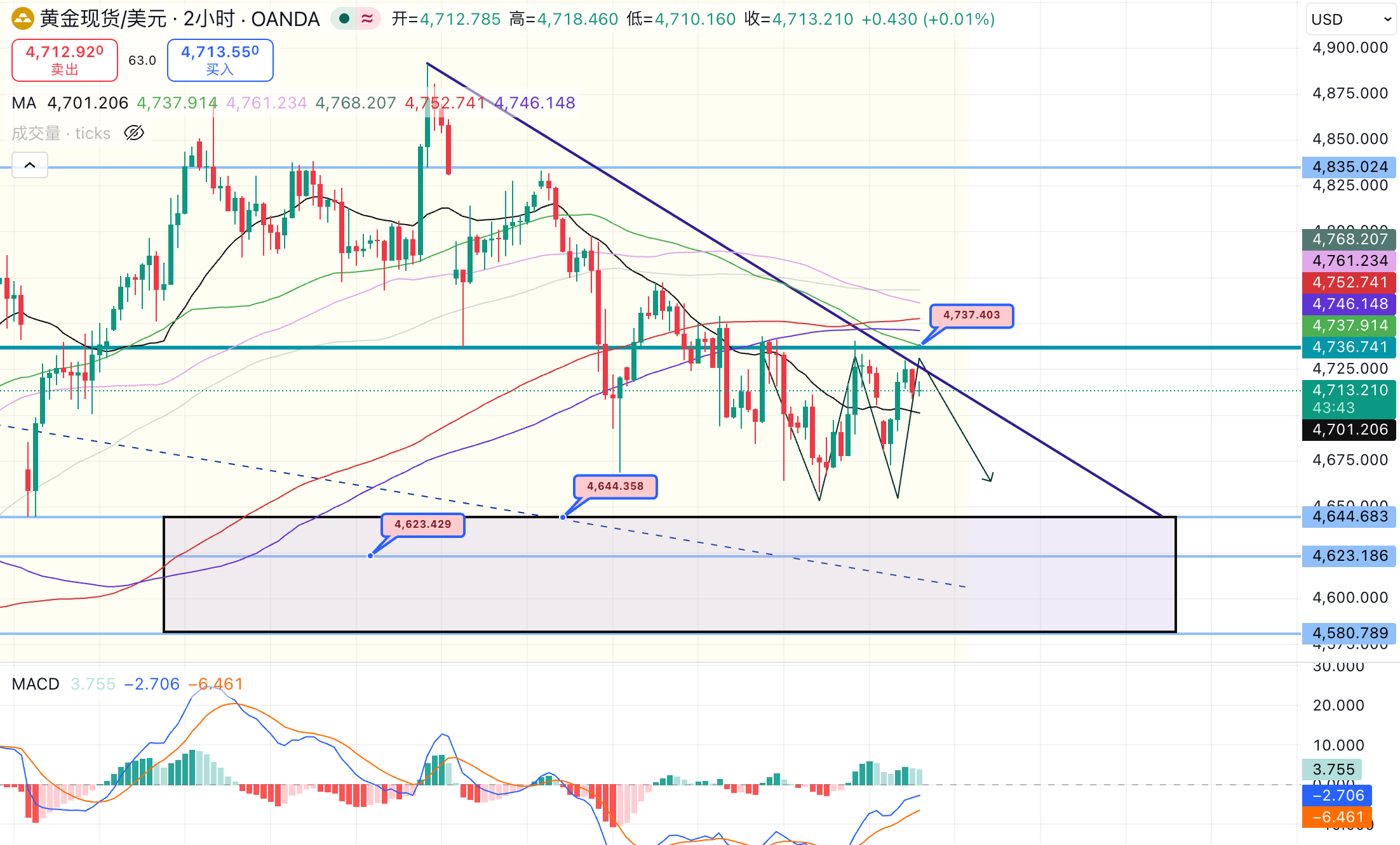 徐文婷: 欧盘分析|黄金4700上方震荡,多空拉锯关注4737压力