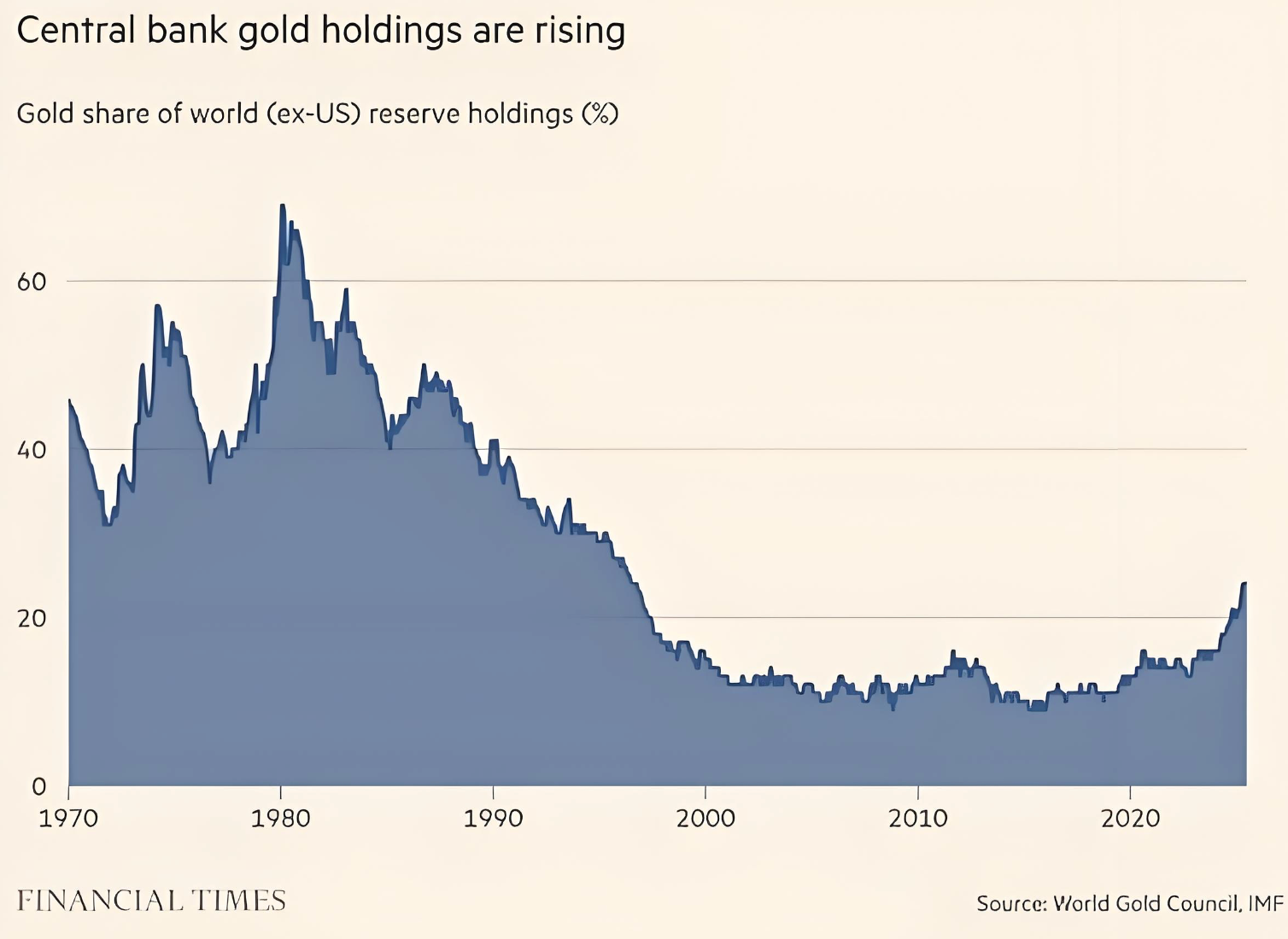 黄金在央行储备中的占比,会回到1980年的巅峰水平吗?