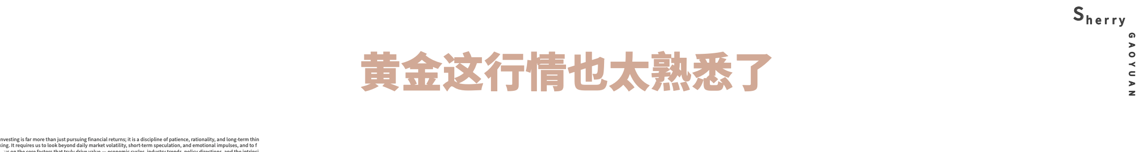 外汇界雪莉:黄金这行情也太熟悉了