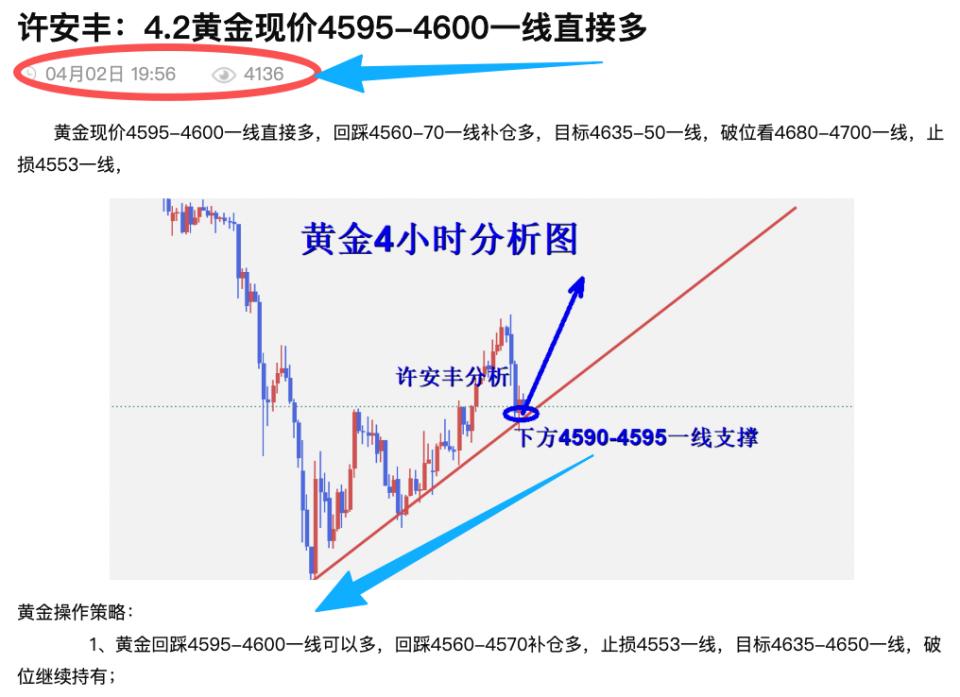 许安丰:4.3黄金昨晚现价多单相当给力,完美到达止盈目标