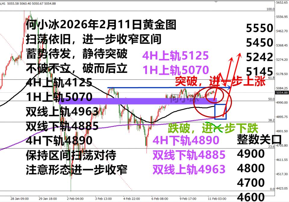 何小冰:金价扫荡依旧,形态进一步收窄等待非农