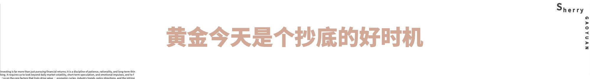 外汇界雪莉:黄金今天是个抄底的好时机