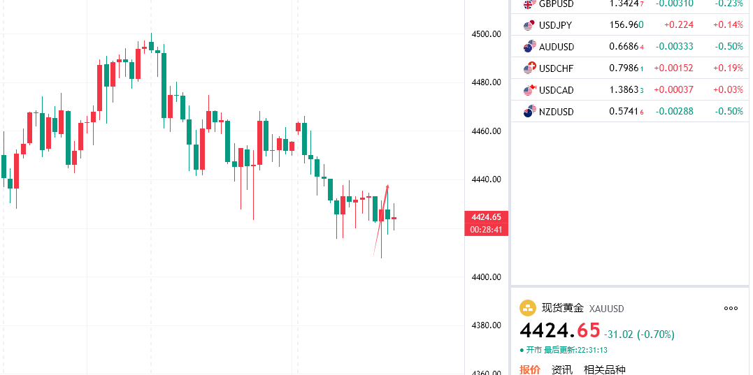 郑氏点银:黄金震荡下行修正,今晚留意4400上支撑企稳