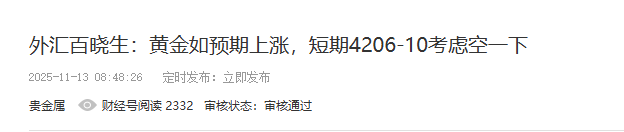 外汇百晓生:黄金4208空单大赚,注意止盈