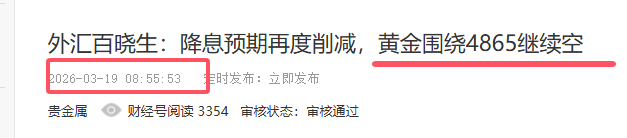 外汇百晓生:黄金4865空的第二目标4788抵达,注意止盈