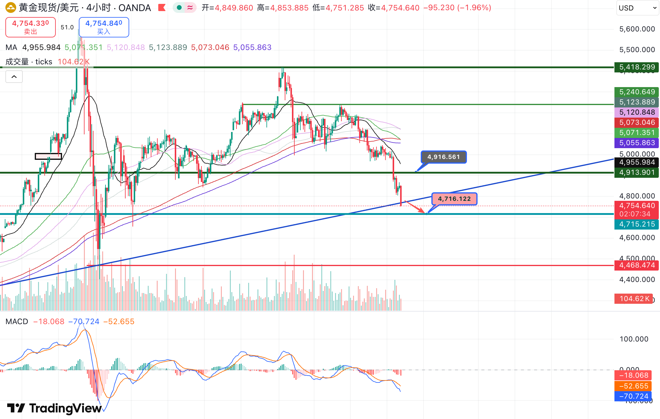 徐文婷欧盘前瞻:黄金放量下跌,第一支撑锁定4753